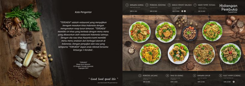 “TERSADJI” merupakan sebuah restoran yang berlokasi di Jakarta Selatan. Tim Jasafotojakarta diminta mengerjakan desain daftar menu restoran yang bertemakan makanan khas Indonesia. Berikut merupakan hasil fotografi dan desain yang sudah kami kerjakan: